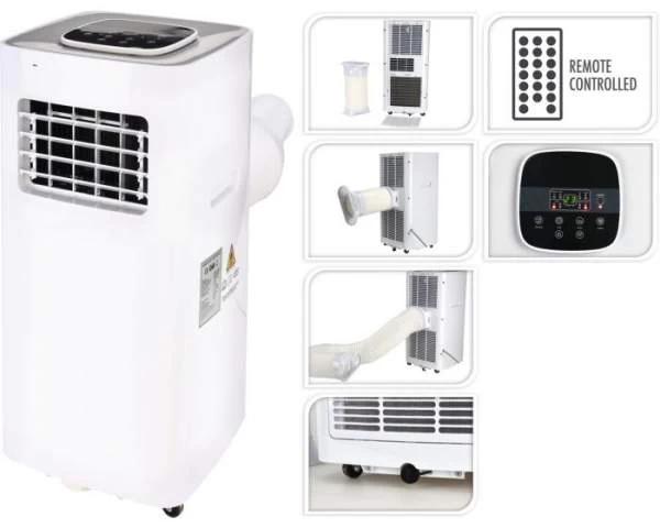 Deze verrijdbare airco beschikt verder over een 24-uurs timer, afstandsbediening (incl. meegeleverde CR2025 batterij) en een LED-paneel om de airco te bedienen. Verder heeft de airco een afvoerslang van 150 centimeter lang en wordt deze geleverd met een wasbaar filter en een schuifstuk voor het raam, zodat de slang goed het raam uit geleid kan worden.