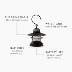 Met een bereik van 35 – 100 lumen geeft deze lamp genoeg licht om jouw tent of campingtafel te verlichten. Kies voor sfeer of duidelijk licht door te kiezen uit twee standen: hoog en laag. De lamp heeft een voet en een ophanghaak, waarmee je de lamp overal makkelijk neerzet of ophangt. Zijn stevige stalen behuizing maakt de lamp schokbestendig en dus een ideale campinglamp.Â