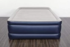 Dit Bestway Tritech luchtbed is, met een draagvermogen van 300 kilo, geschikt voor twee personen. Het luchtbed heeft een lengte van twee meter en is anderhalve meter breed. Zo heb je net zoveel ruimte als thuis. De stevige constructie van luchtkamers zorgt dat je het luchtbed makkelijk stevig opblaast en de hele nacht comfortabel licht. Het luchtbed heeft een opstaande rand en ingebouwd kussen, zo val je niet uit bed en heb je altijd een goede slaaphouding.Â