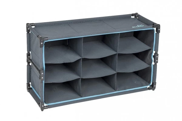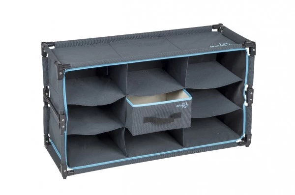 Op zoek naar een praktische kast voor in de tent? Deze vouwkast heeft 9 vakken en is zeer compact mee te nemen.