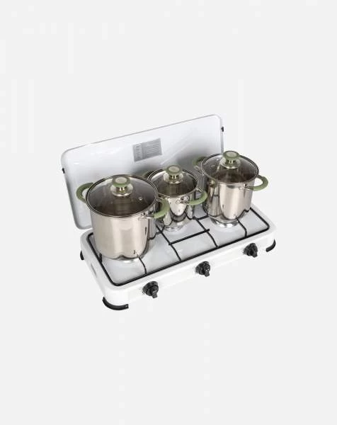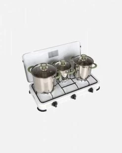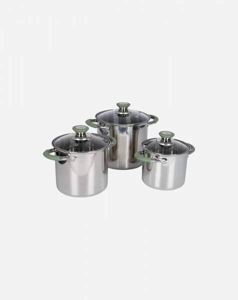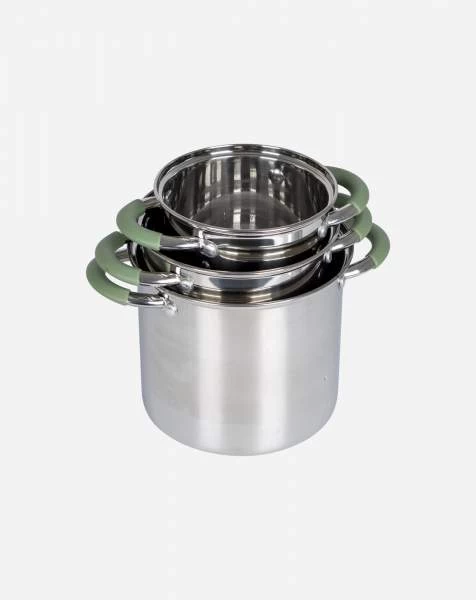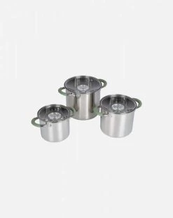 3-delige pannenset gemaakt van RVS. Ideaal voor op de camping.