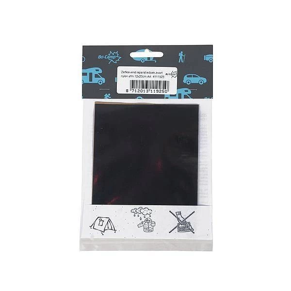 Productinformatie Bo-Camp Reparatiedoek Zelfklevend Nylon – Zwart