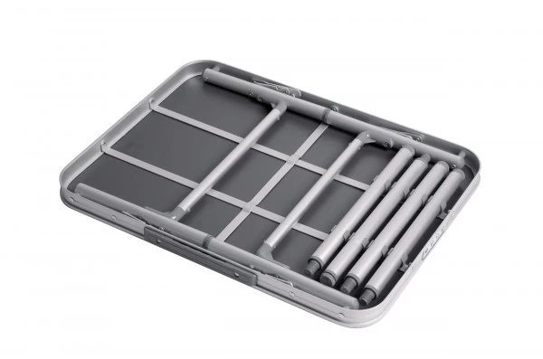 Deze stabiele campingtafel van Bo-camp is 60 bij 45 centimeter. De bijzettafel heeft afneembare poten en is hierdoor eenvoudig en compact in te klappen.