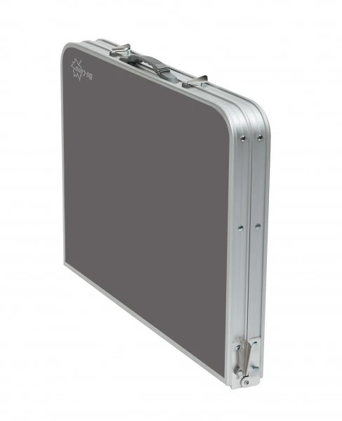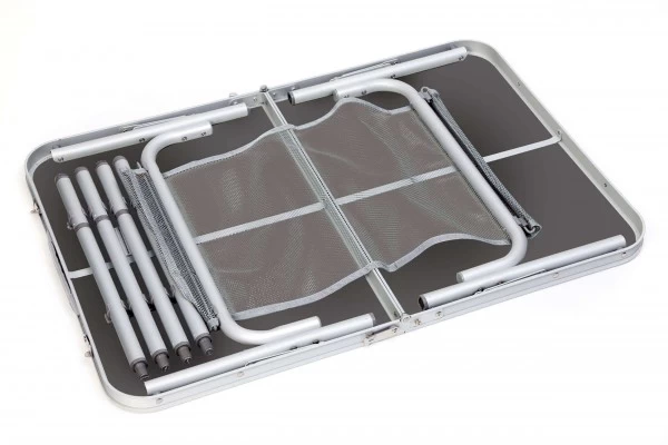 Deze Bo-Camp tafel heeft een afmeting van 90 x 60 x 70 centimeter en heeft een deelbaar tafelblad.Â