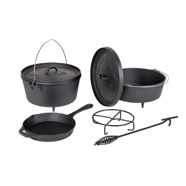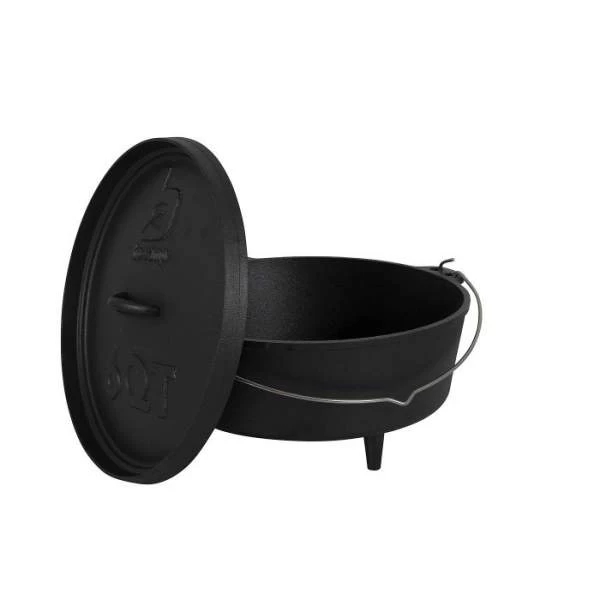 Deze tradiotionele gietijzeren pan kan niet ontbreken als je op vakantie gaat. Je kan hem gebruiken boven open vuur of op kolen. Dit maakt hem ideaal om te bakken, braden, frituren, koken of stofen maar de naam zegt het al, hij is ook geschikt als oven.