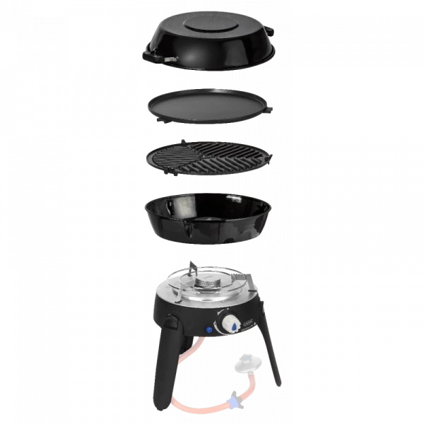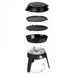 | Bijzonderheden: | Automatische piezo ontsteking, inklapbare poten, incl: draagtas, pandrager, BBQ rooster, bakplaat, pan en deksel |