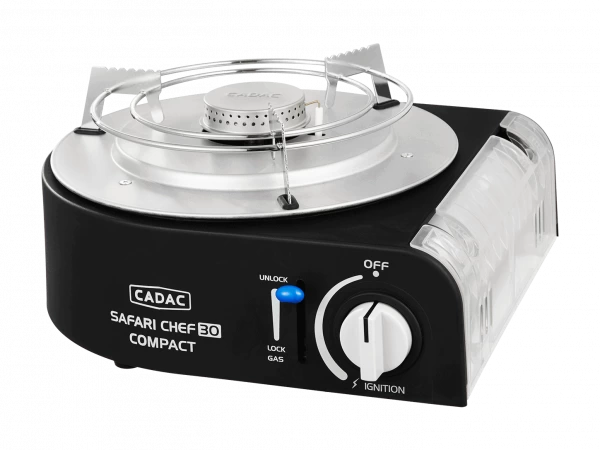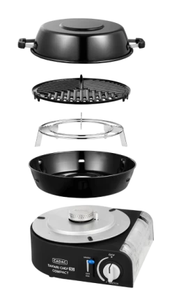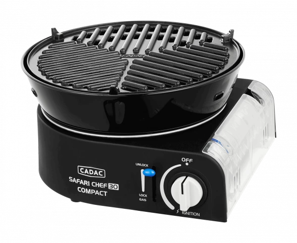 Deze kleine gasbarbecue is tevens lekker veelzijdig aangezien je de deksel ook kunt gebruiken als soep/sauspan. Als je nog meer mogelijkheden wilt, kun je deze gewoon uitbreiden met nog meer kookoppervlakken zoals een paella pan of een pizzasteen. Doordat dit model klein is en op gascartridges werkt, weegt deze niet veel en is deze ook uiterst compact. In de bijgeleverde draagtas neem je deze dan ook eenvoudig overal mee naartoe. Ook schoonmaken is geen probleem dankzij de Greengrill keramische coating waarvan de BBQ is voorzien. De Safari Chef 30 Compact Lite van Cadac is dus ideaal voor elk outdoor avontuur!