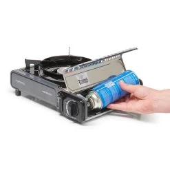 De Camp’Bistro van Coleman heeft een pansteun voor extra stabiliteit: zeer eenvoudig en praktisch in gebruik. Dit robuuste kooktoestel wordt geleverd met een draagkoffer van harde kunststof, voor eenvoudig dragen en veilig opbergen. Dankzij de veiligheidsvergrendeling worden nieuwe patronen altijd veilig en op de juiste manier ingevoerd. Dit kooktoestel is volledig afstelbaar en gemakkelijk aan te maken dankzij piëzo-ontsteking.