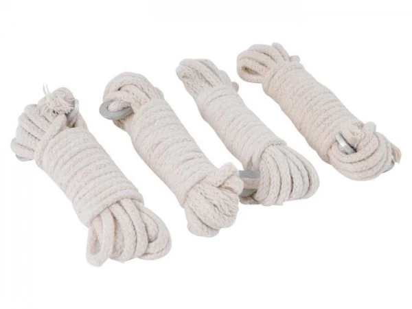 Vier katoenen scheerlijnen met een lengte van 4 meter en een dikte van 3 millimeter.Â