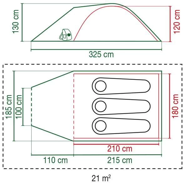 | OppervlakteBinnentent: | 210 x 180 cm |