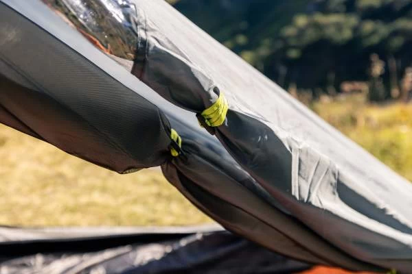 | Bijzonderheden: | Makkelijk op te zetten ring & pin systeem, buitentent met getapete naden, PU gecoat en brandvertragend |