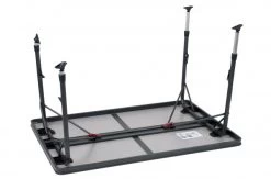 Deze eettafel is inklapbaar en in hoogte verstelbaar. Het tafelblad is extra ruim zodat deze plaats biedt tot 6 personen. De aluminium rails aan de onderzijde van deze campingtafel zorgt eveneens voor extra versteviging. De hoogwaardige materialen en het hittebestendige en watervaste tafelblad zorgen voor een lange levensduur.