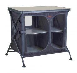 Ben je op zoek naar een kast voor in de voortent? Dan is het niet gek dat je oog op deze campingkast van Crespo is gevallen. Het blad van deze kast is water- en hittebestendig. Je kunt er dus een kooktoestel op plaatsen. Maar je kunt ook je koffiezetapparaat op de kast zetten. Het blad en de platen binnenin zijn afgewerkt met een aluminium rand. Met de verstelbare pootjes kun je de campingkeuken makkelijk recht zetten op een ongelijke ondergrond.