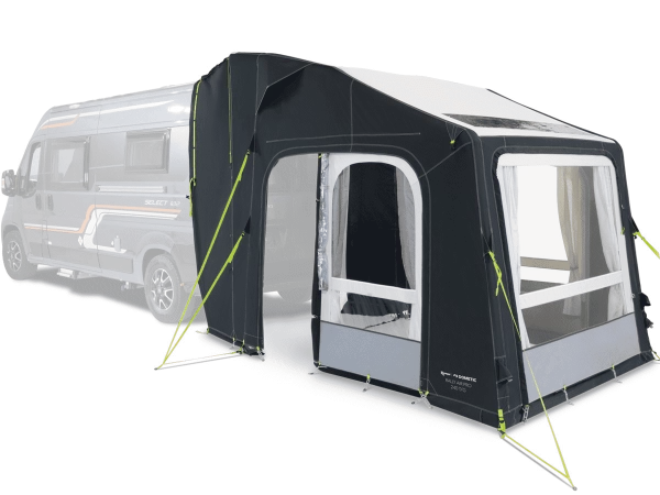 De Rally AIR Pro 240 T/G bustent is speciaal ontwikkeld voor jouw omgebouwde buscamper met achterdeuren. Je zet de achterdeuren open en stapt zo de grote extra leefruimte in. Dankzij de grote ramen kun je heerlijk droog een boekje lezen, waar je ook bent. Je hebt geen stokken nodig voor deze tent, want je pompt het frame op.