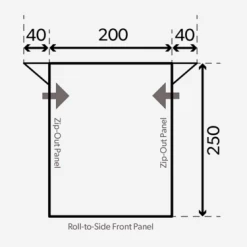 Deze Rally 200 voortent van Kampa heeft een diepte van 250 centimeter, een lengte van 200 centimeter en heeft een groot oprolbaar voorpaneel. Dankzij de heldere ramen heb je altijd veel licht in de voortent. Is het te warm? Dan kun je de voortent helemaal openritsen. De standaard, aan de zijwanden, aangenaaide schuimkussens zorgen voor een perfecte aansluiting aan de caravanwand. De voorwanden zijn neerrolbaar en uitritsbaar.