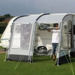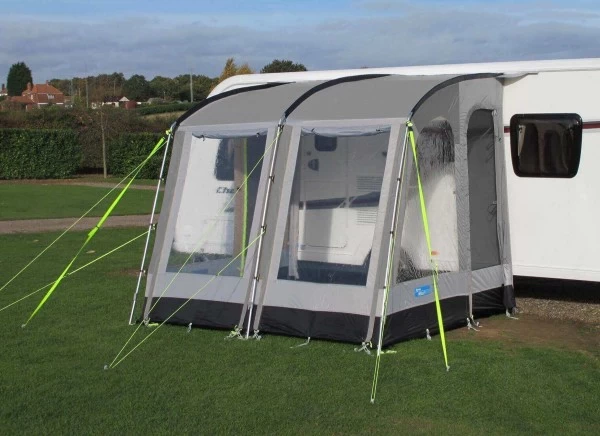 Deze Rally 200 voortent van Kampa heeft een diepte van 250 centimeter, een lengte van 260 centimeter en heeft een groot oprolbaar voorpaneel. Dankzij de heldere ramen heb je altijd veel licht in de voortent. Is het te warm? Dan kun je de voortent helemaal openritsen. De standaard, aan de zijwanden, aangenaaide schuimkussens zorgen voor een perfecte aansluiting aan de caravanwand. De voorwanden zijn neerrolbaar en uitritsbaar.