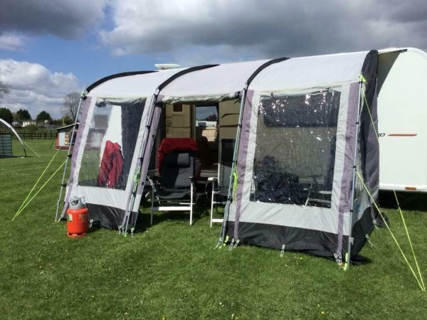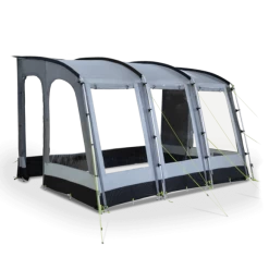 Deze Rally 200 voortent van Kampa heeft een diepte van 250 centimeter, een lengte van 390 centimeter en heeft een groot oprolbaar voorpaneel. Dankzij de heldere ramen heb je altijd veel licht in de voortent. Is het te warm? Dan kun je de voortent helemaal openritsen. De standaard, aan de zijwanden, aangenaaide schuimkussens zorgen voor een perfecte aansluiting aan de caravanwand. De voorwanden zijn neerrolbaar en uitritsbaar.