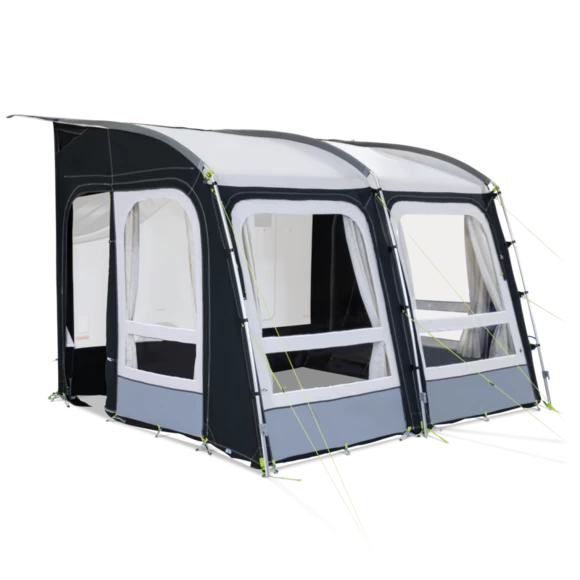 Deze Rally Pro 200 voortent van Kampa heeft een diepte van 250 centimeter, een lengte van 330 centimeter en heeft een groot oprolbaar voorpaneel. Dankzij de heldere ramen heb je altijd veel licht in de voortent. Is het te warm? Dan kun je de voortent helemaal openritsen. De standaard, aan de zijwanden, aangenaaide schuimkussens zorgen voor een perfecte aansluiting aan de caravanwand. De voorwanden zijn neerrolbaar en uitritsbaar.