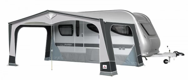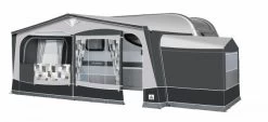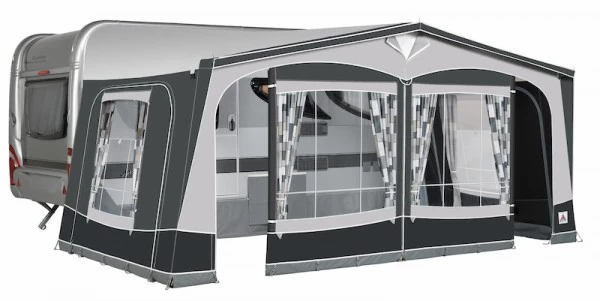 Met deze grote voortent van Dorema vergroot je je leefruimte op de caravan. Een voortent zorgt natuurlijk ook voor meer privacy op de camping. De Garda voortent kun je het hele jaar door gebruiken, dankzij zijn sterke doek en goede waterdichtheid. De grote ramen laten veel licht door, maar je kunt de voortent ook verduisteren met de gordijnen. Met het EasyGrip snelklem-systeem klem je de staanders en dakliggers eenvoudig met één handbeweging vast.