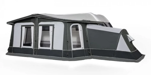 De Doréma Luxor Air 280 is een unieke oppompbare voortent die in de hele rail van de caravan ingetrokken wordt. Deze opblaasbare voortent heeft een diepte van 280 cm en heeft een 6 hoekig ontwep met twee deuren in deze hoeken. Een rondlopende petluifel voorkomt vuile strepen op de zijwand en biedt men de mogelijkheid om extra of permanent te ventileren.
