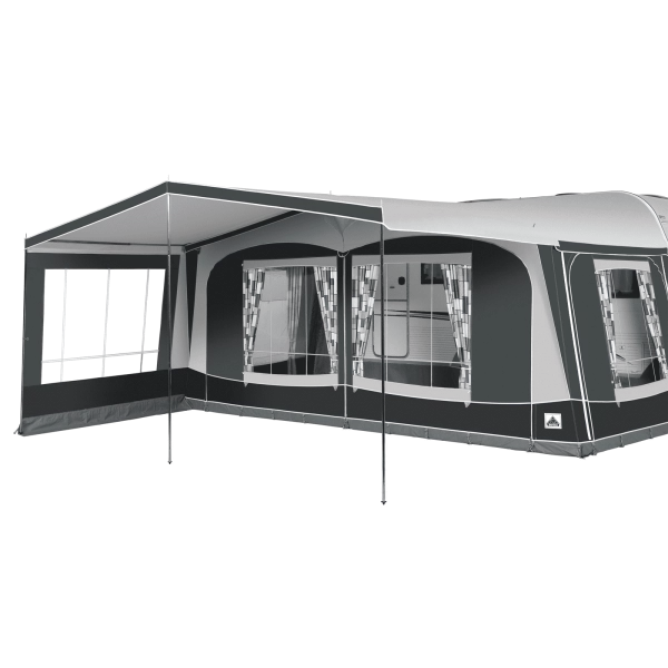 Deze universele voortent-luifel is speciaal ontworpen voor bevestiging aan de voorkant van jouw voortent.