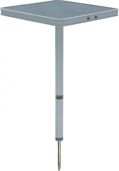 Deze bijzettafel van aluminium prik je zo even naast je stoel in de grond!
