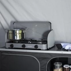 Ben je op zoek naar een lichtgewicht 3-pits gasstel voor op de camping? Dan is dit gasstel ideaal. Dit kooktoestel heeft drie stabiele pannendragers die voldoende ruimte bieden aan drie pannen. Met dit tafelmodel gasstel maak jij de lekkerste pasta’s, soepen en rijstgerechten.Â