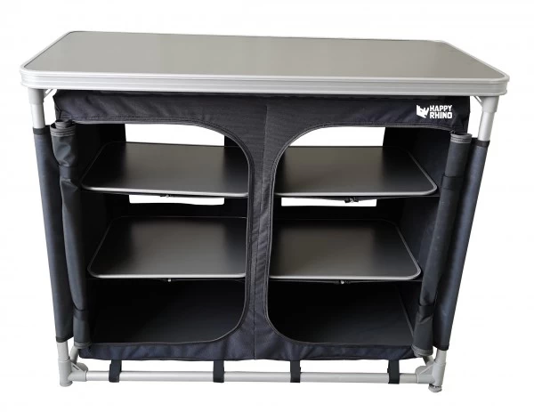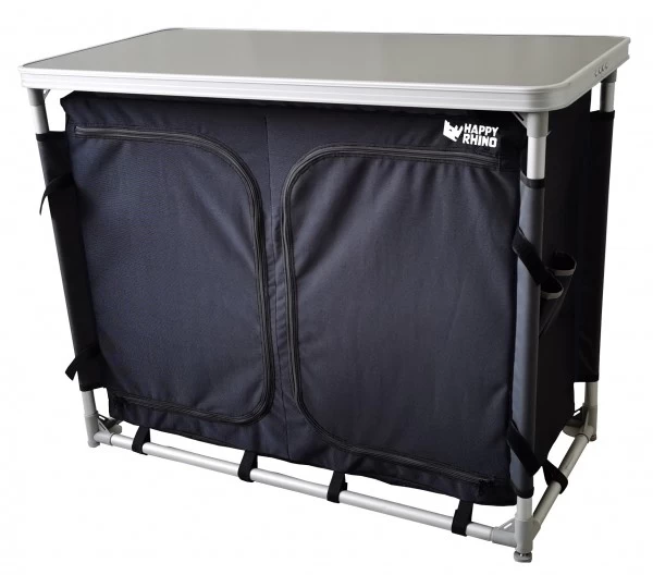 Waar je ook op de camping staat, jij kan al jouw spullen kwijt in de opbergkast van Happy Rhino.