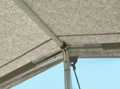 Met het Megaframe staat de Atlas luifel goed vast, ook bij wind en regen. Het is daarom de perfecte luifel voor seizoenskampeerders. De Atlas wordt gemonteerd aan de uitsteek van je voortent met behulp van 3 Mega F-links. Daarmee creëer je een terras met schaduw en een verdubbeling van het overdekte oppervlak.Â