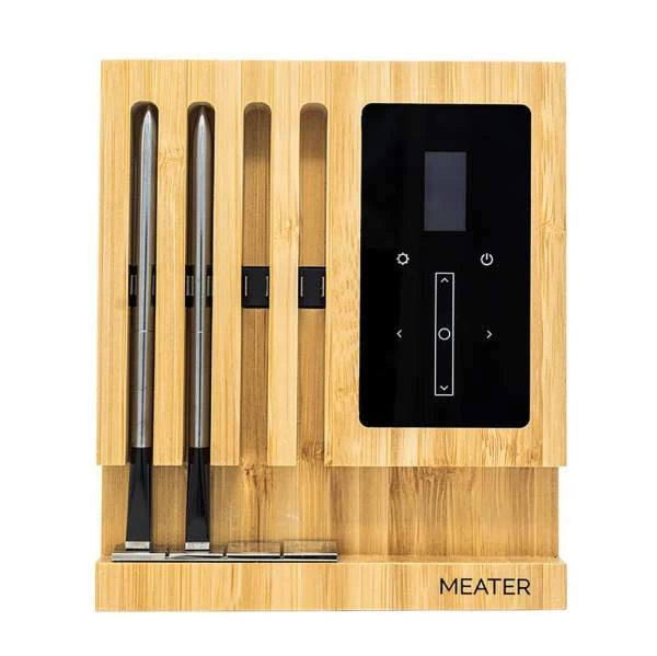 Vlees bereiden wordt eenvoudig met deze draadloze vleesthermometers van Meater. De vier thermometers in het Meater Block werken perfect samen via WiFi en de temperatuur is gemakkelijk af te lezen via het scherm, smartphone of tablet.