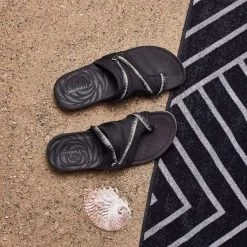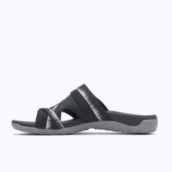 Comfortabel over het strand wandelen deze zomer? Deze damesslipper is gevoerd met Lycra. Dit zorgt voor extra demping. Je kunt de slippers naar eigen wens verstellen dankzij het bandje. De bovenkant van de sandaal is van leer en suede. De voering is behandeld met FRESH antimicrobiële middelen  om nare geurtjes te verminderen. De Merrell-luchtkussentjes in de hiel absorberen schokken. De EVA-tussen zool zorgt voor extra comfort. De M-select GRIP zool aan de onderkant zorgt voor extra grip op elke oppervlakte. Perfect voor lange tochten door de duinen.