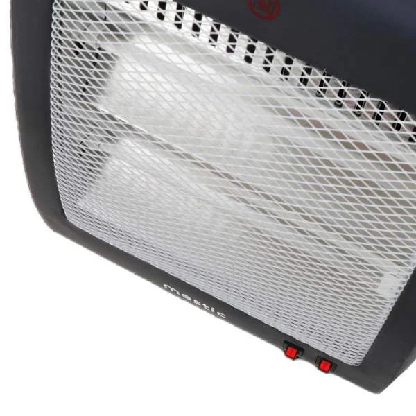 De Mestic Quartz MQK-200 is een veilige, compacte en eenvoudig te bedienen elektrische kachel. Je hoeft niet bang te zijn als je de kachel per ongeluk omstoot of aanraakt wanneer hij aan staat. De aanraak- en omvalbeveiliging zorgen ervoor dat de kachel automatisch uitschakelt als hij omvalt of verplaatst wordt. De kachel heeft twee verwarmingsbuizen, deze genereren warmte en licht. De warmte verdeelt de kachel gelijkmatig door de ruimte met de reflector op de achterkant. Je verstelt de Mestic Quartz MQK-200 eenvoudig tussen twee verwarmingsstanden met de schakelaars op de kachel.Â