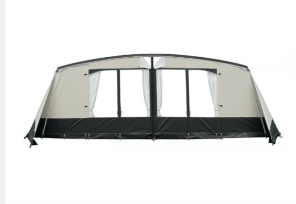 Het is mogelijk om van je luifel een combi-luifel te maken door er een voorwand in te plaatsen. Ideaal voor als het een keer slecht weer is.