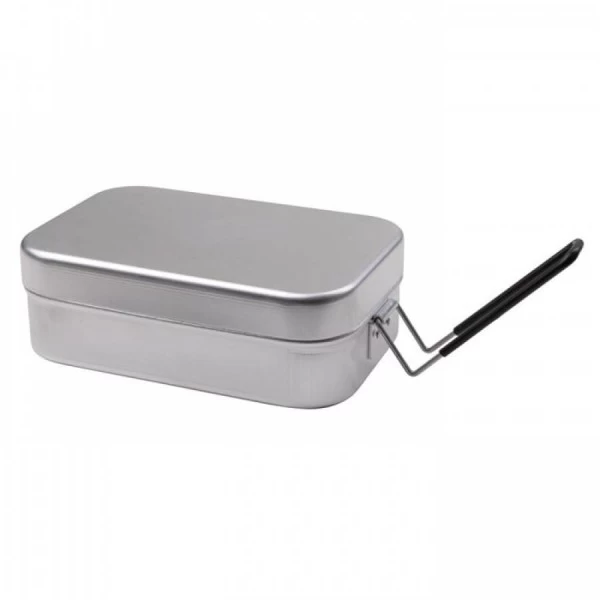 Stevige aluminium mess tin met verwijderbaar handvat en deksel.Â