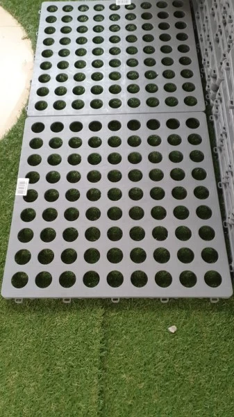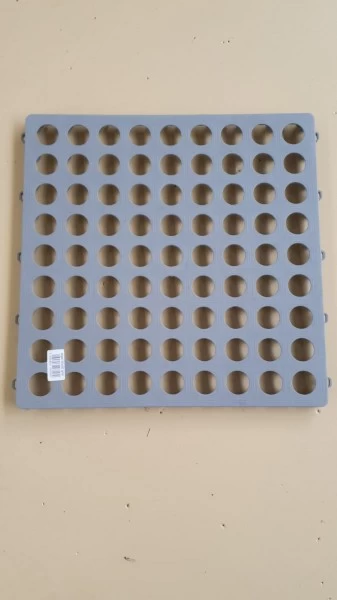 Deze kunststoffen vloertegels in de kleur grijs zijn per plaat van 50 x 50 x 2.5 cm verkrijgbaar. Deze tegels zijn makkelijk in elkaar te klikken en ideaal voor je voortent, terras of onder het zwembad.Â